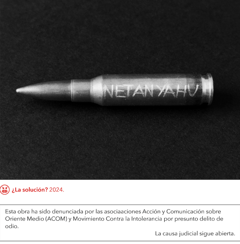 Los artistas Nuria Güell, Sebas Cabero y Byron Maher, que fueron denunciados por ACOM (1) y el Movimiento contra la Intolerancia en noviembre de 2024, repiten en esta nueva muestra colectiva que nos llama a reflexionar sobre la manipulación, la propaganda y el propio genocidio, desde variadas expresiones y formatos artísticos críticos que desafían y provocan al espectador a cuestionar globalmente el mundo en que vivimos.