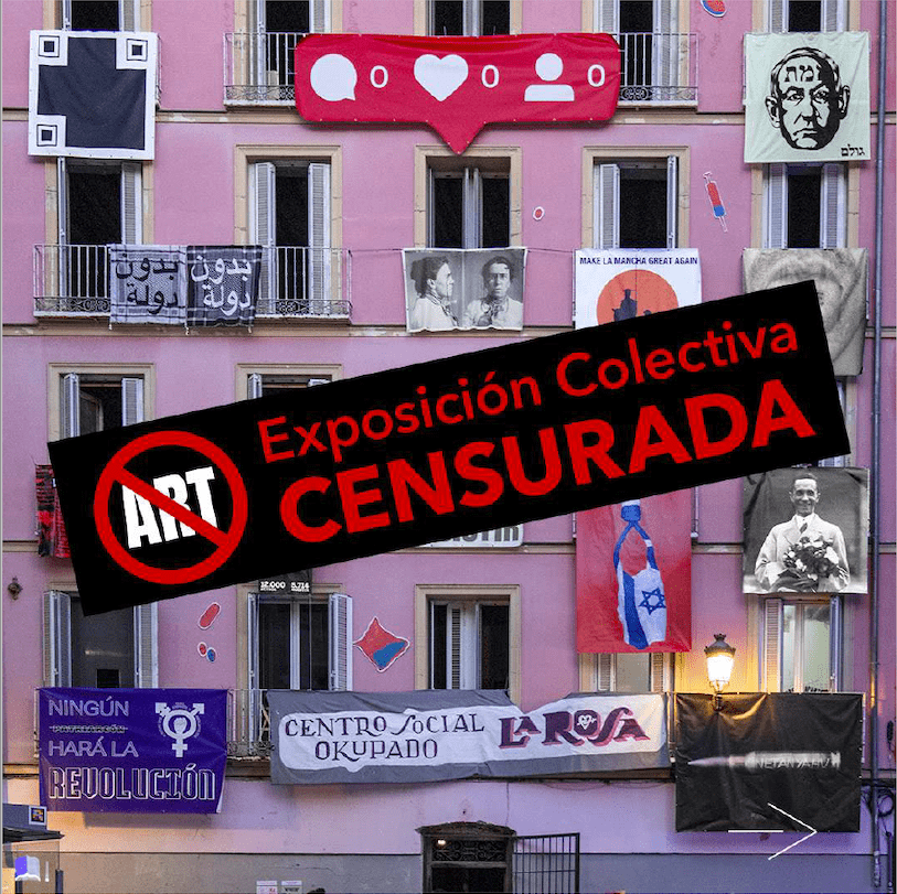 Y para saber de dónde partimos, tal como comenzaba en la nota, sería bueno y necesario recordar la cronología de la censurada exposición “Rabia Mierda”, un expresivo título para una manifestación intensa y visceral de frustración, ira y descontento hacia las injusticias sociales, políticas y personales, ante la masacre que cometía (y sigue cometiendo) Israel con el pueblo palestino. La muestra se expuso en la fachada exterior del CSO, utilizando los balcones del edificio como espacios expositivos, donde cada artista presentaba su obra en formato pancarta: La exposición “Rabia Mierda” en el CSO La Rosa ¡CENSURADA!