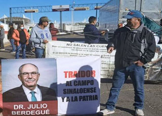 ▲ Ante el fracaso de las pláticas con el gobierno federal, líderes de productores acudieron a San Lázaro, donde se acordó instalar una mesa para revisar la iniciativa de ley de aguas y mediar con Gobernación, donde el diálogo se reanudará hoy. Además, se prometió una reunión de transportistas con el secretario de Seguridad. Mientras, las manifestaciones continuaron en las carreteras del país, como en el corredor fiscal de Nogales, Sonora (en la imagen). Foto La Jornada / E. Méndez, F. Camacho y corresponsales
